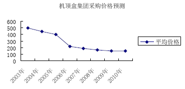 由于技术进步和厂商竞争,以及运营商压价,未来机顶盒的集团采购价格会持续下降,在2006年左右价格能有比较明显下降,然后趋向稳定。