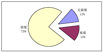 我国2002年煤炭探明可采储量为1145亿吨,居世界第三位。全 行业 年煤炭开采量达到近10亿吨,是第一产煤大国。其中,生产矿井和在建矿井占用可采储量的比例仅为27%,尚未利用的占73%。我国煤炭资源质量差异较大,烟煤、无烟煤比例较大,其中烟煤储量最高,占总量的75%。