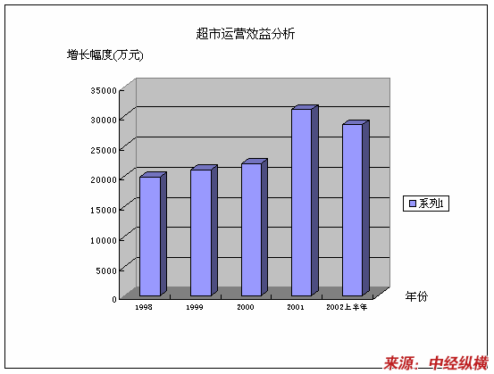 此外,超市的发展速度也在同 行业 中居于领先地位。根据销售额增长比率排名,百强中2000年发展最快的企业前10名中有9名是超市。
