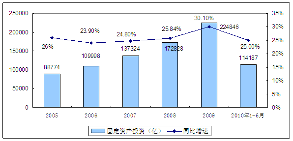 2005-2010年2季度我国全社会固定资产投资情况图