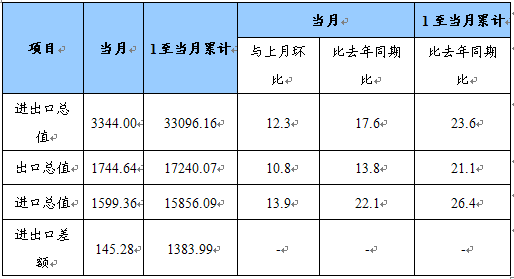 注:1、进出口差额,+为出大于进;-为进大于出
