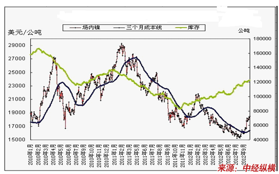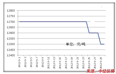 9月份,LME镍现货平均价格为17119美元/吨,比上个月上升9.1%;期货价格为17167美元/吨,上涨8.9%。国内金川公司于9月多次上调金川镍出厂价,月底价格在129000元/吨,而月初为116000元/吨。短期来看,不锈钢需求不振,全球镍需求依然疲软,对价格上涨将会有一定的制约作用。法国巴黎银行预估2013年镍价为18375美元/吨。