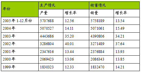 1999-2005年1-12月份中国整车 行业 产销数据汇编