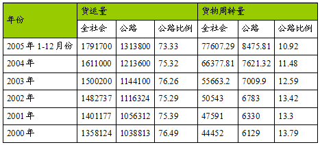 2000-2005年1-12月份中国货运量及货运周转量数据汇编