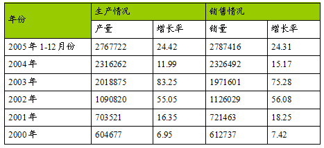 2000-2005年1-12月份中国轿车 行业 产销数据汇编