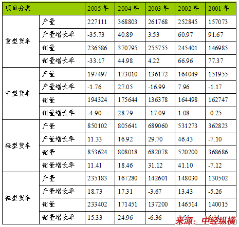 1999-2005年1-12月份中国货车 行业 产销数据汇编