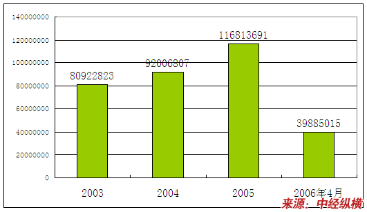 2003年-2006年4月肉制品及副产品加工业工业总产值 分析
