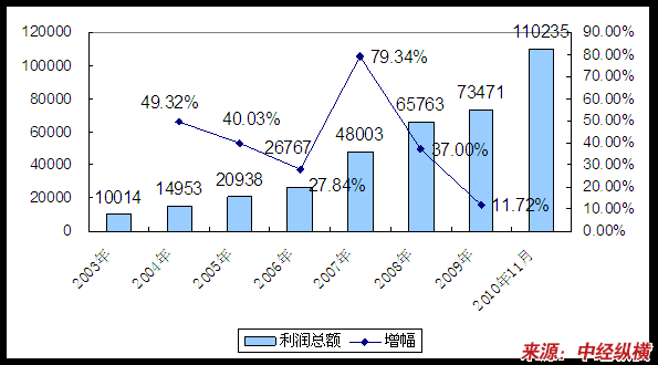 2003-2010年1-11月石榴子石 行业 利润总额发展状况