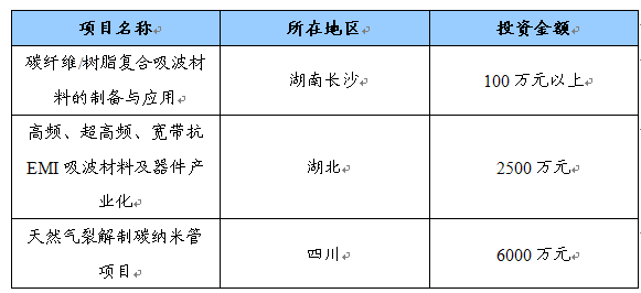 2010-2011年中国复合型吸波材料主要项目分布