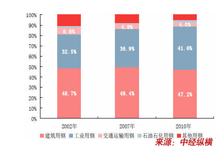 我国钢材应用领域需求量结构