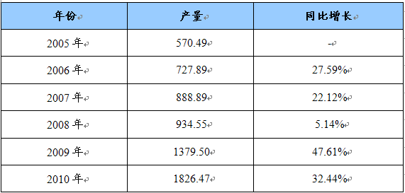 (汽车)产量增长情况统计表 单位:万辆
