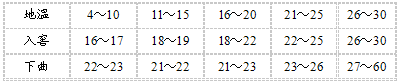 地温和下曲、入窖温度(℃)