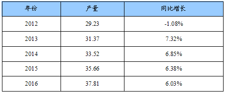 2012-2016年中国自卸车前顶举升油缸产量预测