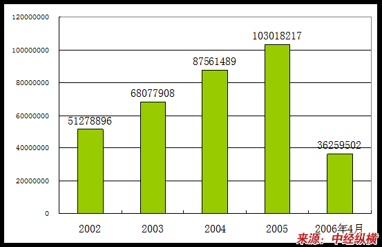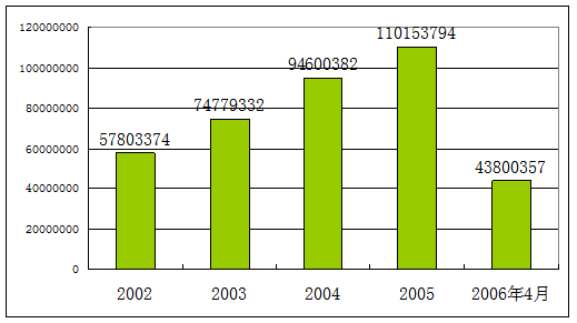 | 2006年1-4月 | 36259502 | 23166196 | 9949607 | 3143699 |