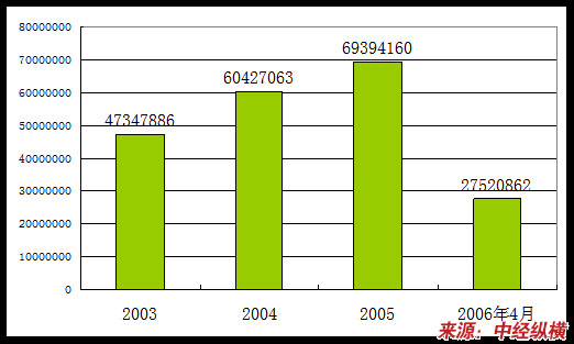 | 2006年1-4月 | 23995964 | 11632739 | 8985225 | 3378000 |