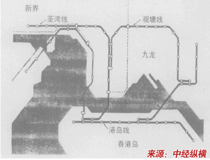香港地铁系统的策划和发展,要追溯至20世纪60年代。当时香港首次进行地铁系统 研究 。第一段观塘线(连接观塘及石硖尾)于1979年10月1日通车。自此,地铁系统便成为香港运输网络中最重要的交通工具之一。至今,地铁网络已增加了5条新的地铁线,包括:(1)观塘线南段(1980年),后来观塘线经东区海底隧道扩展至铡鱼涌(1989年5月);(2)荃湾线(1982年5月);(3)港岛线(1985年5月);(4)为市民提供两种服务的机场线(1998年7月)、东涌线和机场快线;(5)将军澳支线(2002年8月)。
