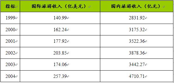 1999-2004年中国旅游业旅游收入