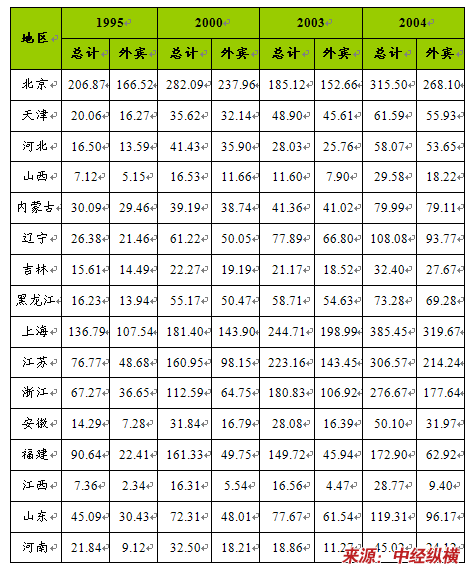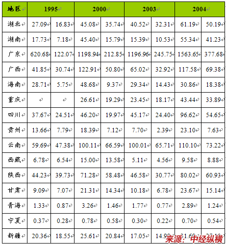 1995-2004年我国各省会城市接待游客情况 单位:万人次