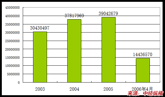 | 2006年1-4月 | 14436570 | 1036826 | 2847667 | 10552077 |