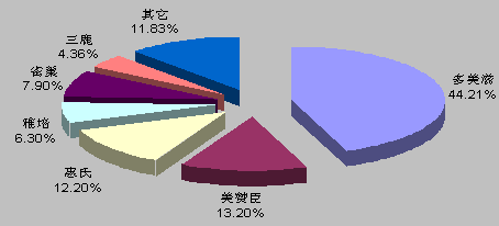 2007年我国婴幼儿奶粉市场品牌占有率情况
