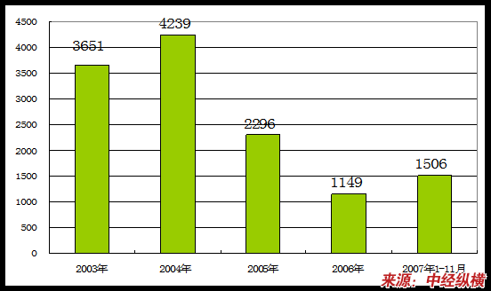 | 2007年1-11月 | 1506 | 943 | 48 | 515 |