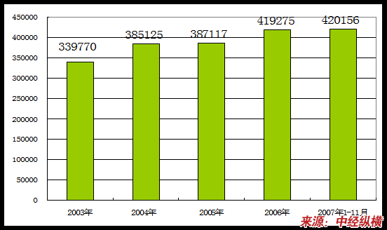 | 2007年1-11月 | 420156 | 271640 | 51217 | 97299 |