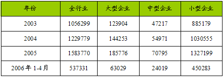 2003年-2006年4月不同规模环境监测专用仪器仪表制造企业集中度