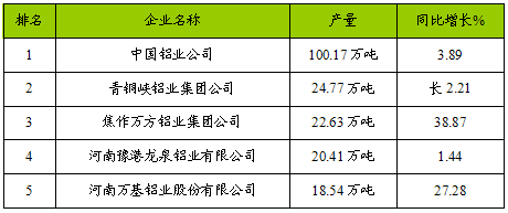 2005年铝产量排名前5位的企业