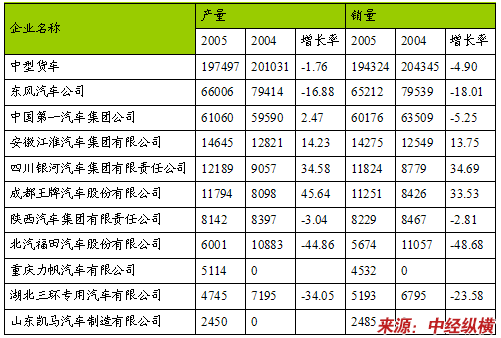 2005年1-12月份中国部分中型货车生产企业产销数据汇编