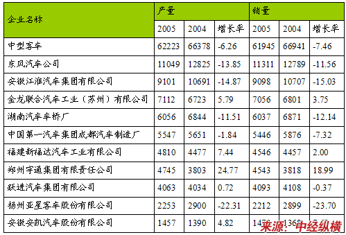 2005年1-12月份中国部分中型客车生产企业产销数据汇编