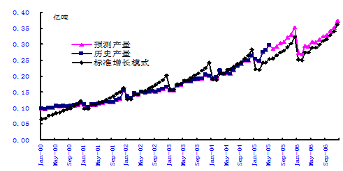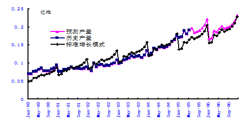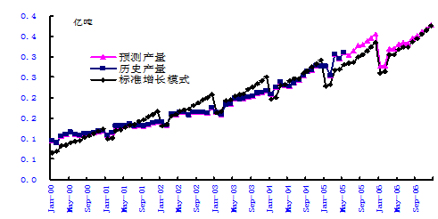 钢材库存在2005年下半年逐渐消化之后,进入2006年后钢材生产景气有望回升。预计2006年我国全年成品钢材产量将达到44013.42万吨,同比增长将达到16.77%。