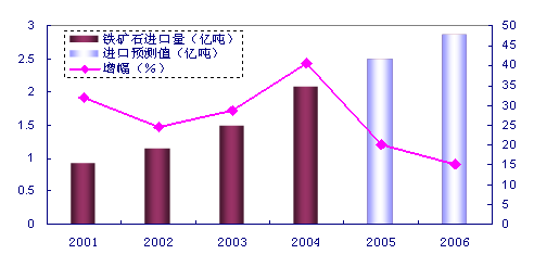 由于国内对进口铁矿石需求增势不断放缓,预计未来几个月的铁矿石进口增加不大,相关资料表明,2005年全年我国预计可进口铁矿石2.5亿吨,同比增长20.13%。同时随着未来钢铁生产增速放缓,我国铁矿石强劲的需求增势也将逐渐回落。我国在7月份出台的钢铁