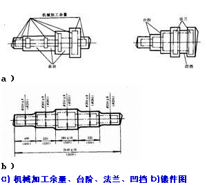 为了简化锻造工艺,零件上的小孔、凹档、台阶等部分,可加上余块而不予锻出,如下图,是否加余块要根据零件的形状、尺寸、锻造技术水平和经济效果来确定。