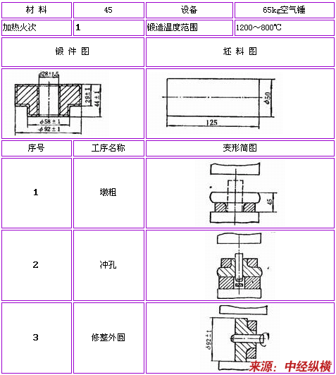 自由锻件的锻造工艺规程举例见下表。