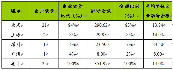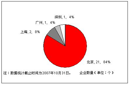 投资地域高度集中 北京企业数量占84%:截至2007年10月31日,中国已获投资的25家教育企业总部均位于一线城市,有21家总部位于北京,占总数的84%。另外上海有2家企业,深圳广州各1家。