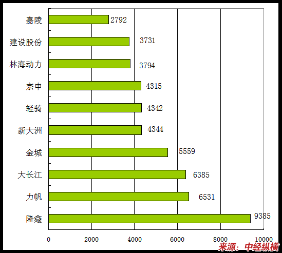 分企业出口情况:2006年1~4月,产品出口创汇排名前10位的企业依次是:隆鑫、力帆、大长江、金城、新大洲、轻骑、宗申、林海动力、建设股份和嘉陵,出口创汇分别达到9385万美元、6531万美元、6385万美元、5559万美元、4344万美元、4342万美元4315万美元、3794万美元、3731万美元和2792万美元,与上年同期相比,上述10家企业均保持不同程度增长,其中隆鑫和林海动力增幅尤为显著,同比增长分别达到1.2倍和1.5倍。2006年1~4月,上述10家企业共创汇5.14亿美元,占摩托车生产企业产品出口创汇总额的60.26%。
