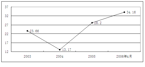| 2006年1-4月 | 31360131 | 19551070 | 5371214 | 6437847 |
