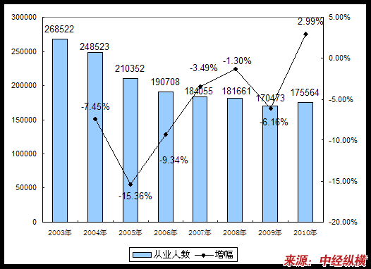 2003-2010年内燃机及配件制造 行业 从业人员发展状况