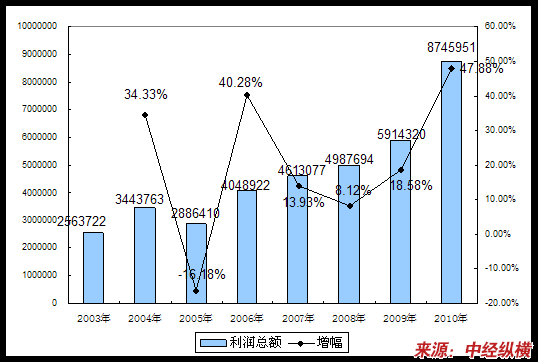 2003-2010年内燃机及配件制造 行业 利润总额发展状况