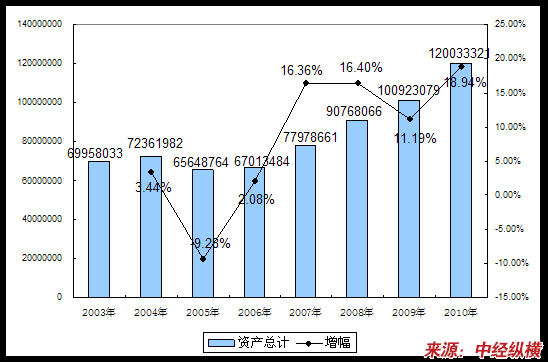2003-2010年内燃机及配件制造 行业 资产总计发展状况