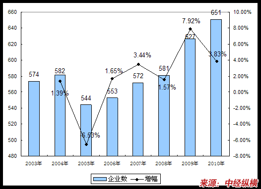 2003-2010年内燃机及配件制造 行业 企业数量发展状况