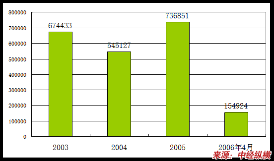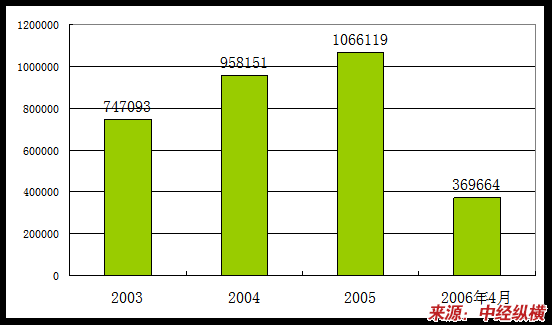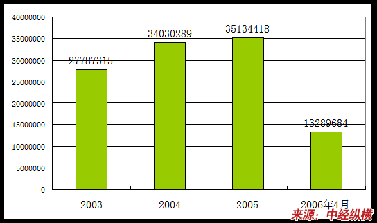| 2006年1-4月 | 13289684 | 4396574 | 6633536 | 2259574 |
