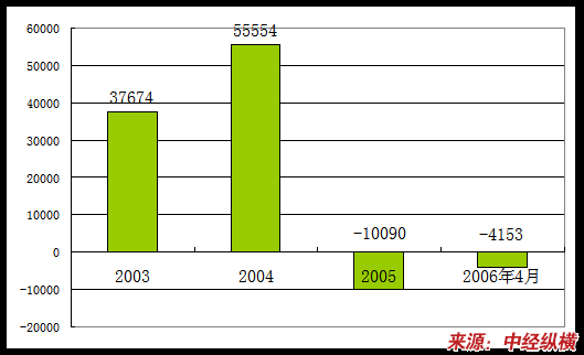 | 2006年1-4月 | -4153 | -1768 | -1810 | -575 |