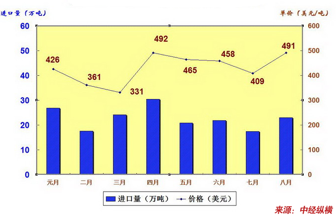 2007年1-8月份共进口普通废钢202万吨,与上年同期414.64万吨比下降了51.28%,8月份进口普通废钢价格上升到491元/吨,创历史新高,比元月初增长了17.18%,与上年同比增长了66.56%,国内废钢资源的缺口得不到足够的补充,进一步加剧市场供应的紧张局面。
