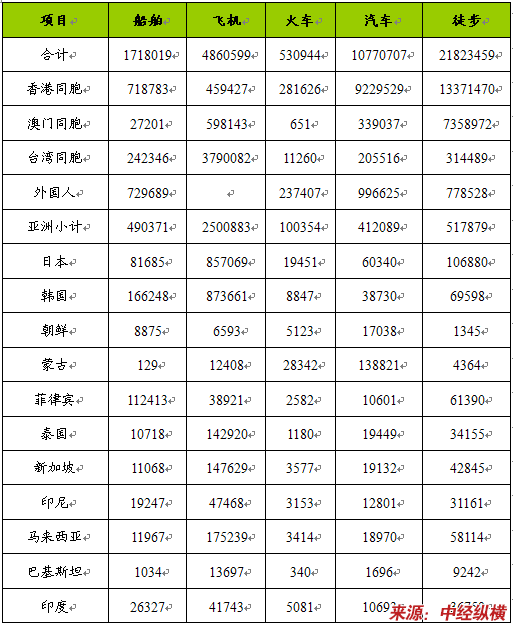 我国入境旅游者入境方式