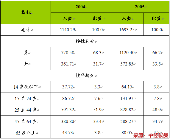 2004-2005年我国入境旅游者性别年龄结构