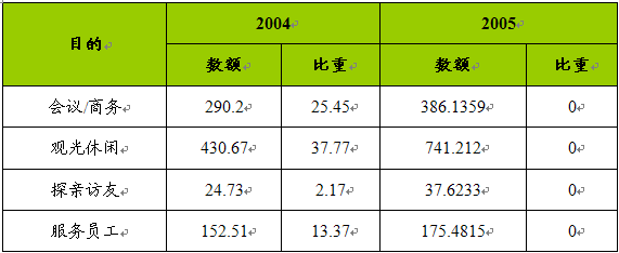 2004-2005年我国入境旅游者旅游目的