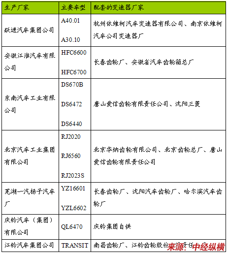主要轻型客车生产厂家主要车型及变速器配套企业