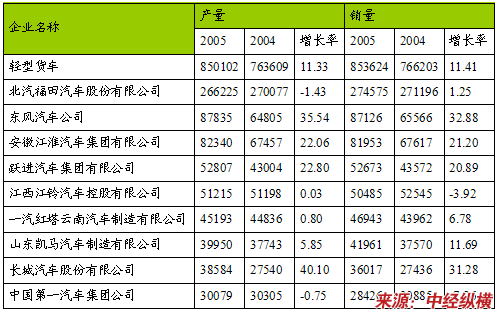 2005年1-12月份中国部分轻型货车生产企业产销数据汇编