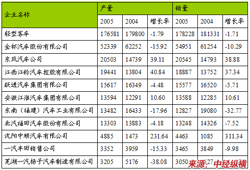 2005年1-12月份中国部分轻型客车生产企业产销数据汇编